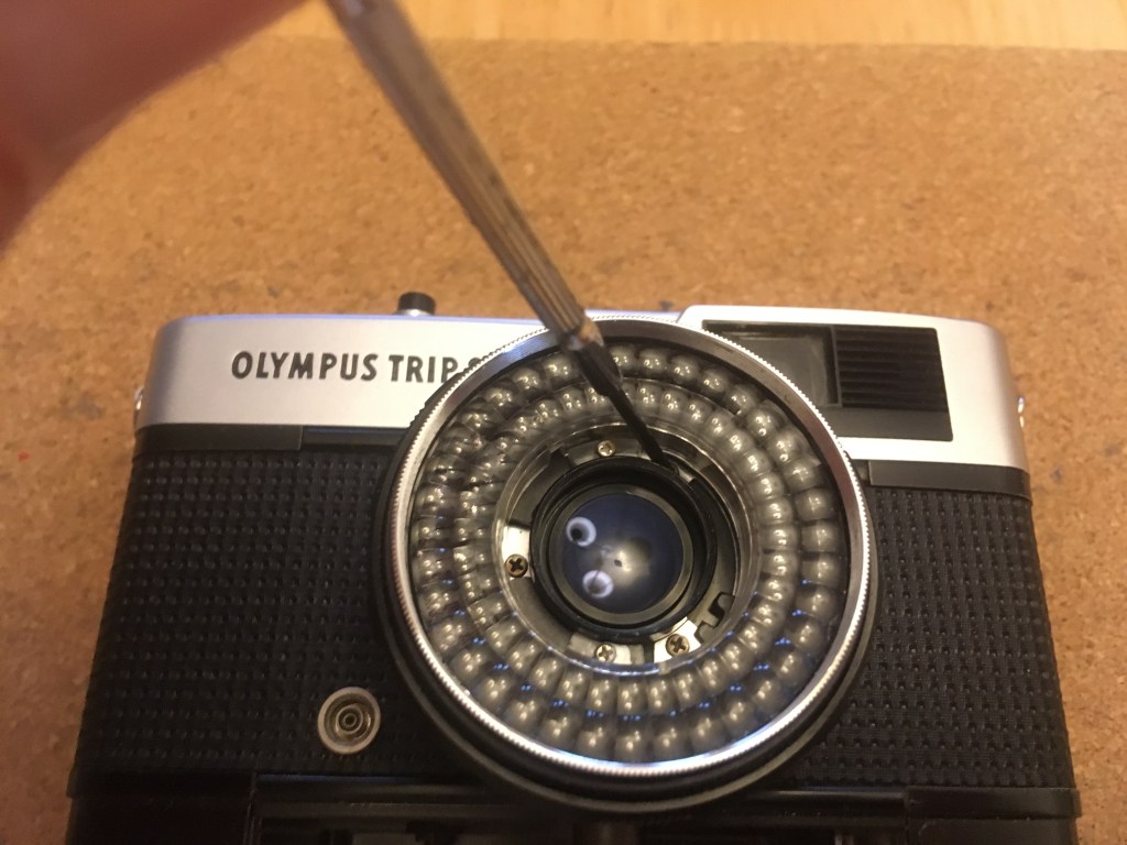 The next step was to loosen the three screws keeping the little ring around the lens in place.