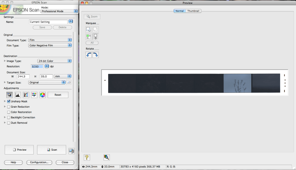 Then clicking the All button and making sure that the number 6 appears in the box above All, it was simply a matter of hitting the scan button and waiting. You’ll notice the typical settings I use for scanning on the left of the screen shot above. I’m continually tweaking these to see what impact they have on my images.